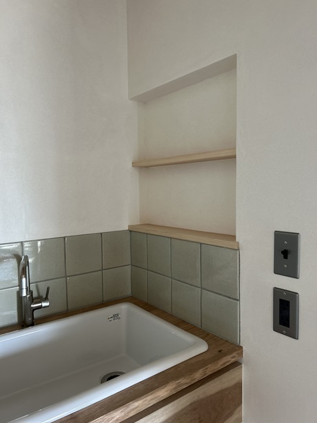 2026-02-04 Home › お部屋ごとの事例 › たけのこのおうちの洗面 たけのこのおうちの洗面 たけのこの家の洗面スペース。病院用流しと天蚕万花の唯一無二にタイルでシンプルなカタチなので空間にも馴染んでいます。脱衣、洗濯のスペースは、洗面とは別に並びに設けています。 関連記事 Kちゃんのおうちのキッチン あつらえる 芝家具発祥の地にてのキッチン 金魚 Kちゃんちのおうち たけのこのおうち 自宅の洗面所 ちっちゃなおうちのお風呂