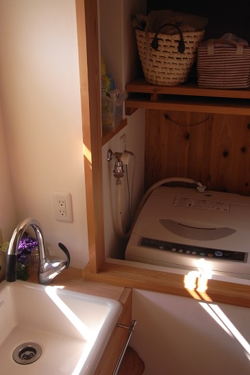 2025-12-16 Home › 竣工したお家 ちっちゃいおうち › ちっちゃちおうちの洗面所 ちっちゃちおうちの洗面所 リビングのR壁の向こうに洗面コーナーがあります。共働きのため家事がしやすいようにキッチンの隣に洗濯スペースがあります。リビングからは、見えない位置にあり、扉があることで、洗濯機をみせないことでくつろぎの空間を保っています。また、ロフトへの階段の途中に室内物干もあります。 Exif_JPEG_PICTURE Exif_JPEG_PICTURE Exif_JPEG_PICTURE Exif_JPEG_PICTURE Exif_JPEG_PICTURE Exif_JPEG_PICTURE Exif_JPEG_PICTURE 関連記事 への字屋根の家 ちっちゃいおうち 木組みの家 グーグーの家 北本の杜 ミドリノオトの洗面室 木組の家のユーティリティ