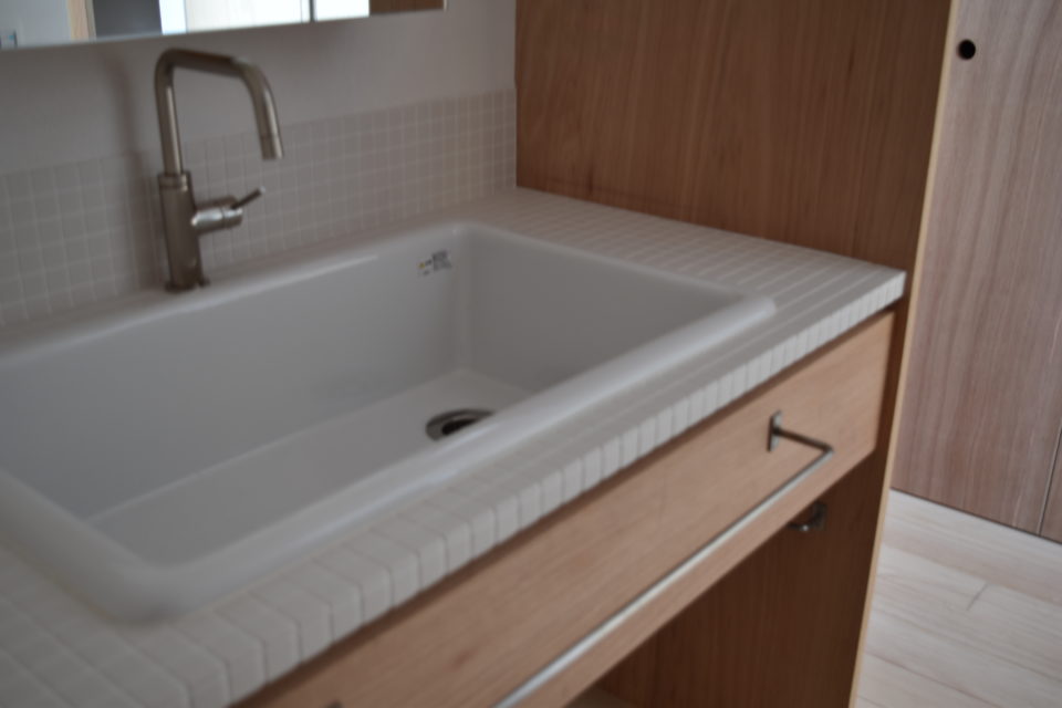 2026-01-17 Home › 竣工したお家 ありがとうのいえ › ありがとうのいえの洗面所 ありがとうのいえの洗面所 ありがとうのいえの洗面所。清潔感あふれる空間です。洗面のスペースと、洗濯、室内物干スペース、脱衣のスペース、それぞれ設けました。 関連記事 田んぼのいえ SASHIさんの引手 玄関 グーグーの家 パントリー 呼吸する家の洗面台