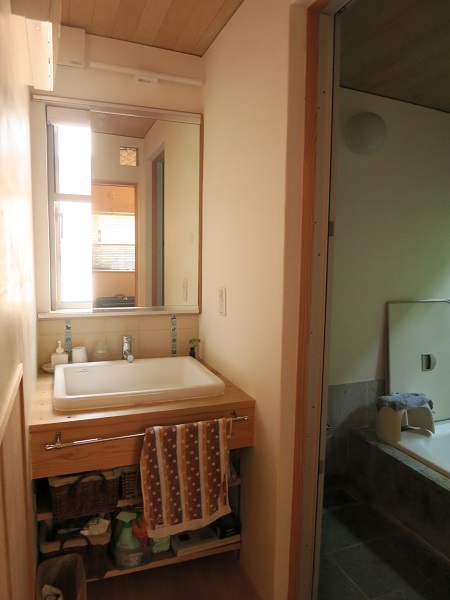 2026-02-10 Home › お部屋ごとの事例 › ちっちゃなおうちのお風呂 ちっちゃなおうちのお風呂 ちっちゃなおうちのお風呂床は十和田石 壁漆喰天井 桧浴槽 ホーローガラスの扉で洗面所とつながっていて広く感じます 関連記事 暗いからこそ 私の椅子 田んぼの家 Kちゃんのおうち 5年点検 たけのこのおうちの洗面